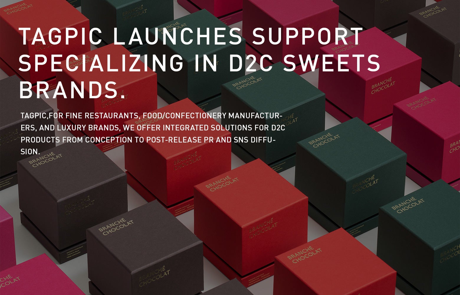 タグピク株式会社の子会社マルシェ株式会社では、2020年9月に第一弾となるD2Cスイーツブランド「BRANCHÉ CHOCOLAT」をローンチ。数百名のインフルエンサーを活用。プロダクト開発から、インフルエンサー拡散、メディアPR展開を実施。新作発売の度に即完売するなど、大変なご好評を頂いております。