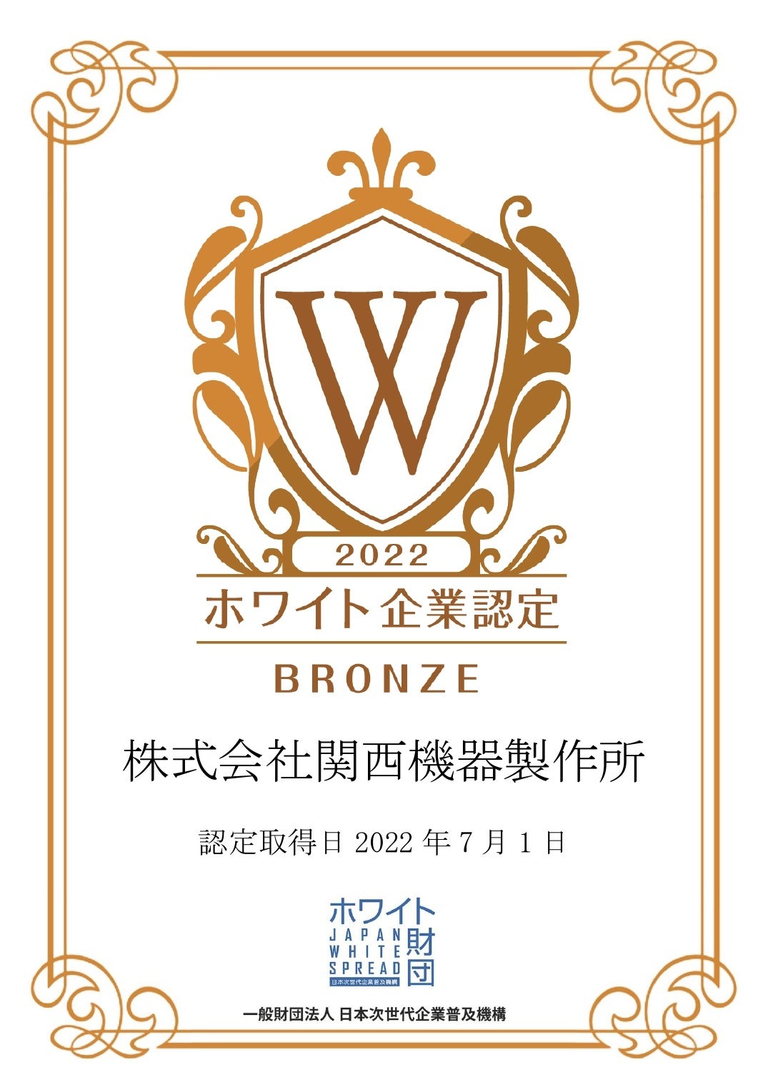 その中でも、株式会社関西機器製作所が2022年7月1日、ホワイト企業認定を取得されました!
