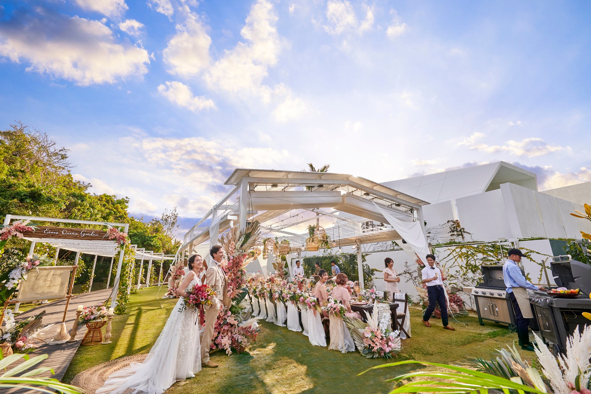 2022年3月にアイネス・オーシャンガーデンを大幅リニューアルし、ムービングルーフテントを新たに設置しました。それに伴い、天候に左右されない多彩なパーティースタイルが可能となり、ガーデンパーティーの販売も開始いたしました。