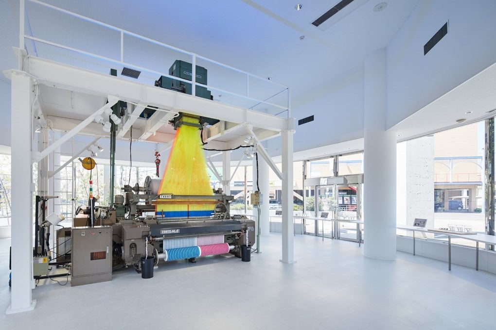 今治タオル地マイバッグは、このLAB内にあるレピア織機で一枚一枚織られています。