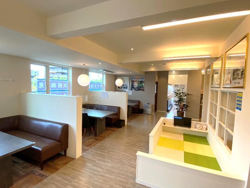 大阪メトロ長堀鶴見緑地線 「鶴見緑地」駅より徒歩約6分、電車でのご来店も便利な立地です。お客様同士の間隔をとり広々とした店内でお客様をお迎え致します。また、お客様がどのお席からでもお子様の存在を感じられるよう、店舗の中心部分にキッズスペースを設けました。