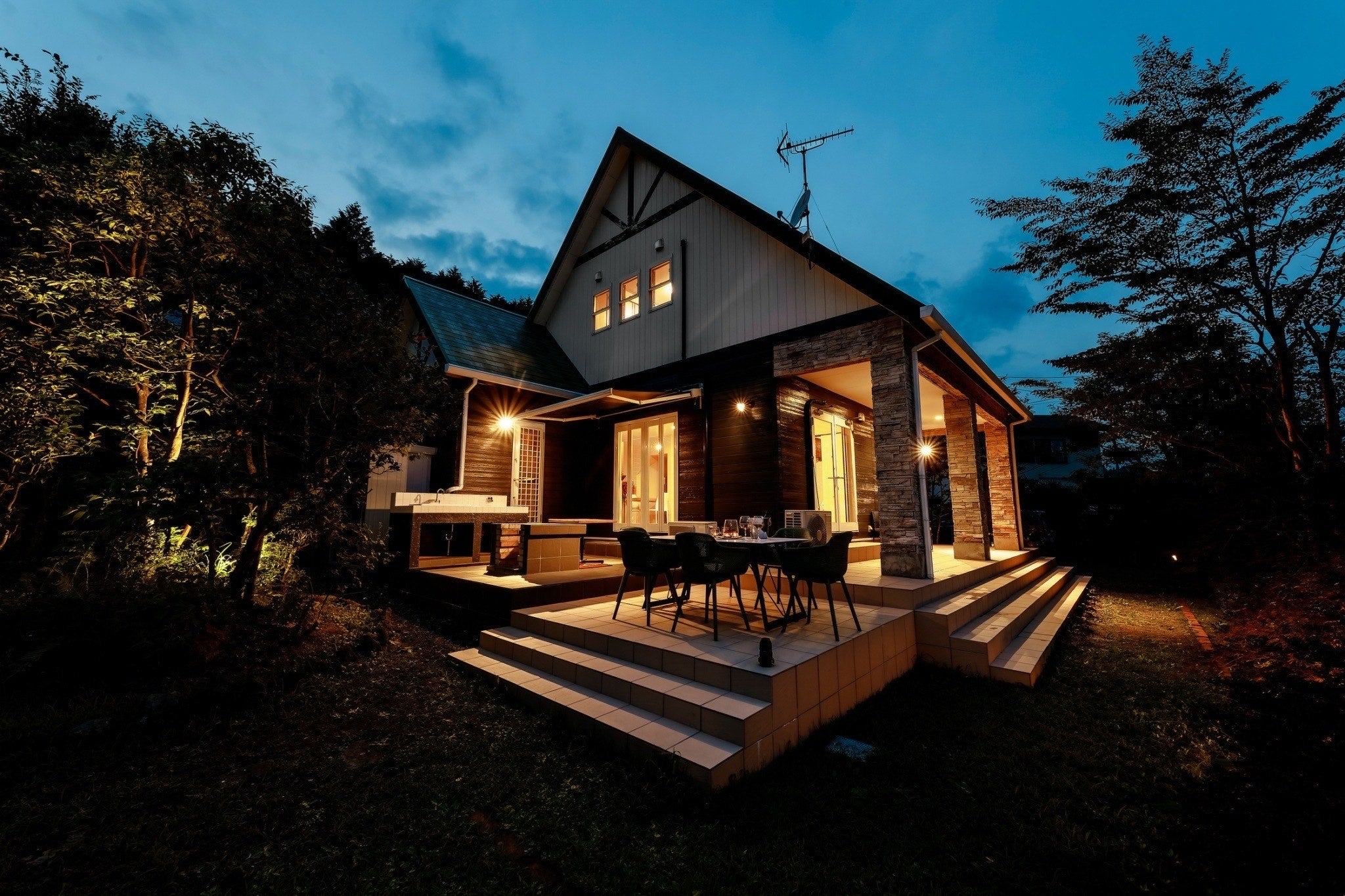 ・客室にはこだわりのインテリアを設置。バーカウンターのあるLDKのほか、囲炉裏のある和室、バスルーム、寝室(1階和室3人、2階和室4人、2階洋室2人)のほか、バーベキューなどができるバルコニーなど。調理家電や調理器具、調味料、音響システム、カラオケ、ゲーム機、ネットフィリックス視聴可能なテレビなどを備えています。また、焼酎約50種類、リキュール類約50種類を備えており、宿泊者は自由に飲むことができます。