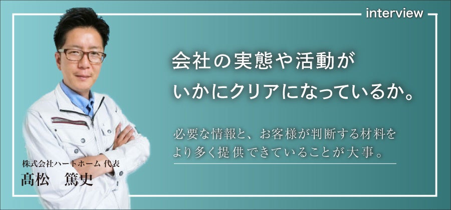 お客様がハートホームについて知りたいと考えた際に、必要な情報とお客様が判断する材料をより多く提供できていることが大事であり、よりクリアにしていくことが、お客様の安心して頂ける要素でありリフォーム会社を選ぶ際の最大のニーズだと考えております。