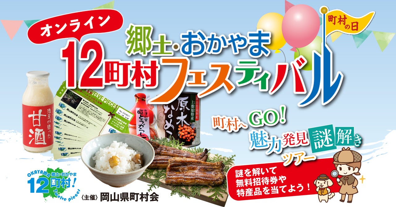 岡山県町村会(所在地:岡山県岡山市北区今 会長:山崎 親男)では、2022年9月1日(木)から10月31日(月)の期間で、岡山県内12町村の魅力を発信する「郷土・おかやま 12町村フェスティバル オンライン」を開催中です。