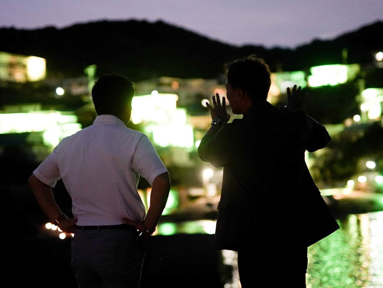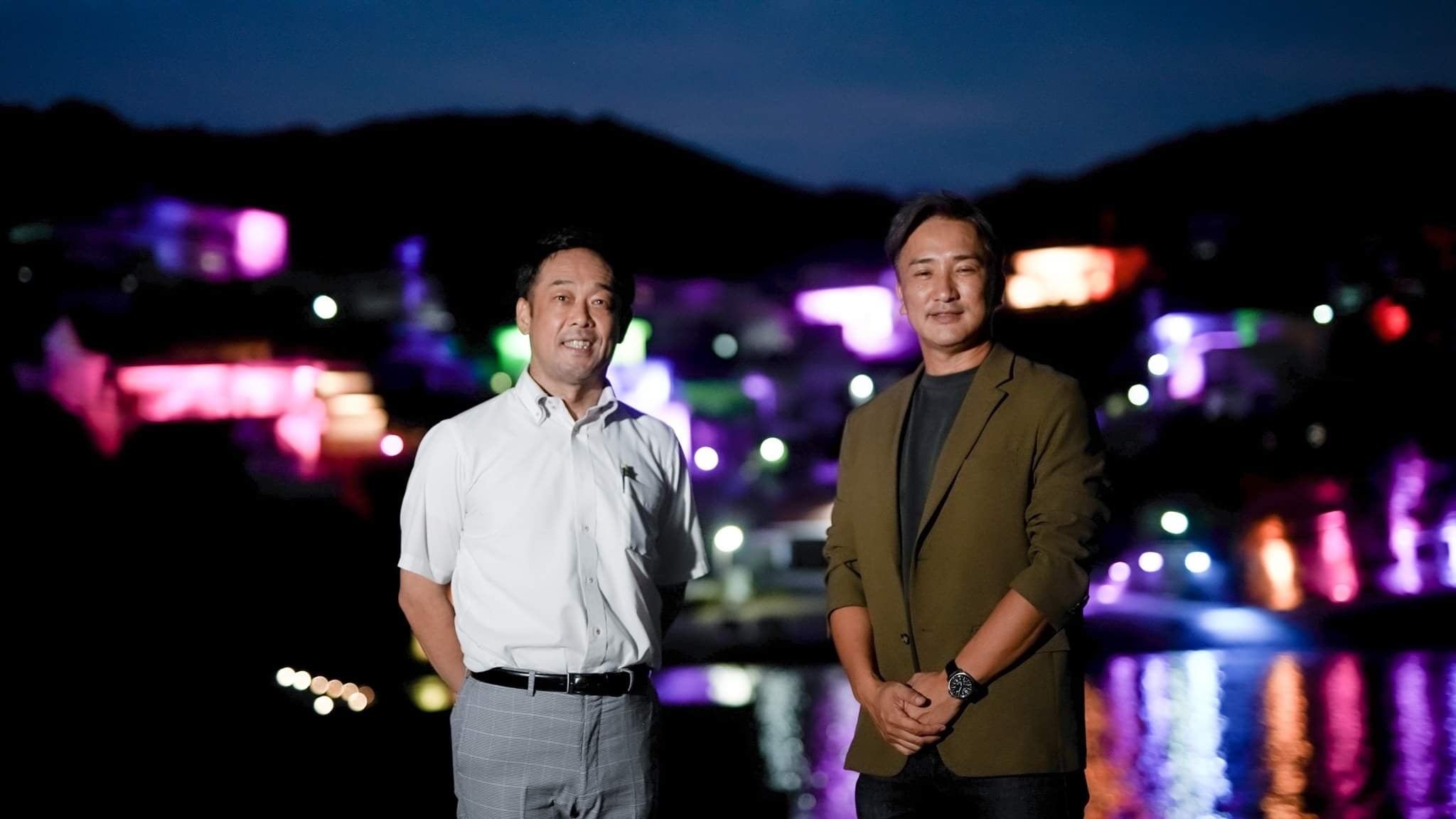 ライトアップのプログラムにより空き家だけを光らせることで現状の地域課題について発信するとともに、全体のライトアップでは、陸と海、ライティングと星空、昼と夜などさまざまな対比でこの場所の価値を発信したこの日。あくまで集客のためのイベントでなく、動画などを通じて集落の魅力を伝えながら、過疎の現状を考えるきっかけづくりとして集落全体が光に包まれました。