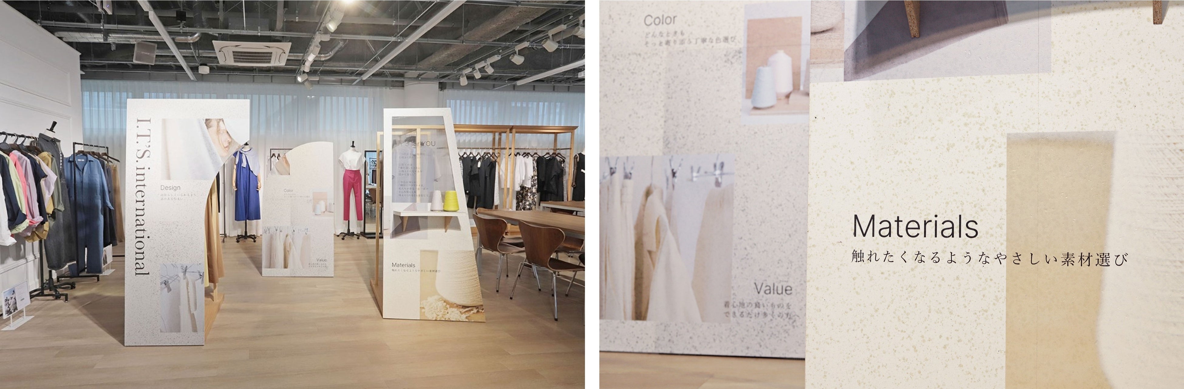再生素材PANECO®を採用した、素材・デザインともにサステナブルな美しいパネル什器を実現。