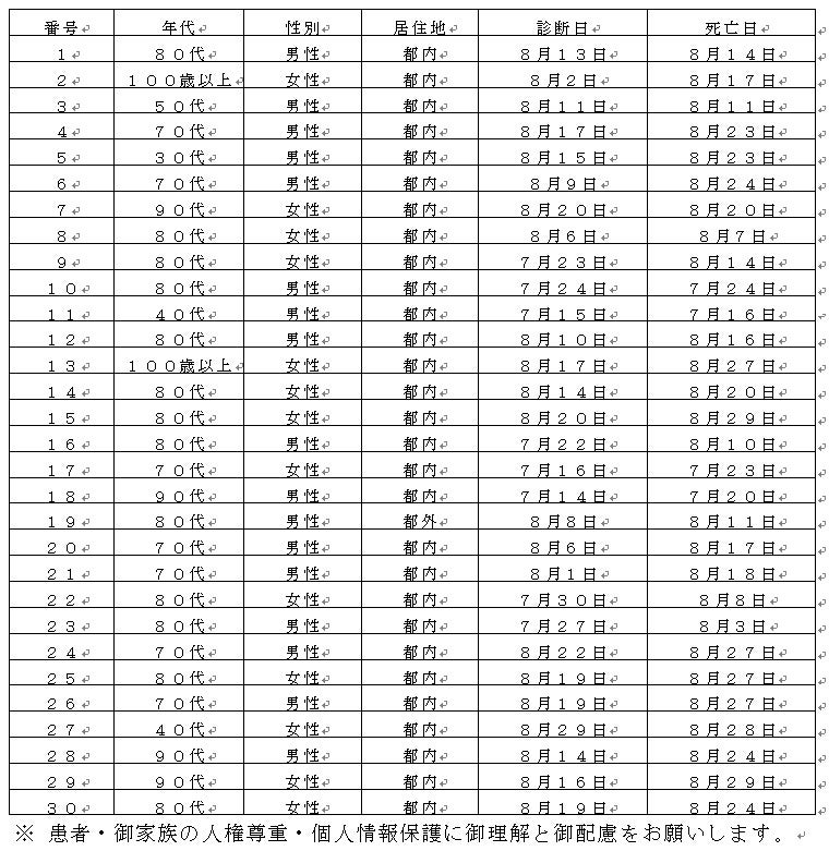 新型コロナウイルスに関連した患者の死亡について business Twitter Facebook はてブ Pocket LINE コピー 2022.09.02 この記事は約1分で読めます。 都内で新型コロナウイルスに感染した方が死亡されましたのでお知らせします。 お亡くなりになった方のご冥福をお祈り申し上げます。