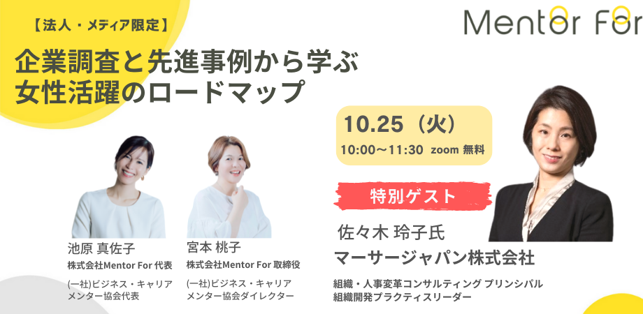 登壇者:Mentor For代表 池原真佐子、Mentor For取締役 宮本桃子