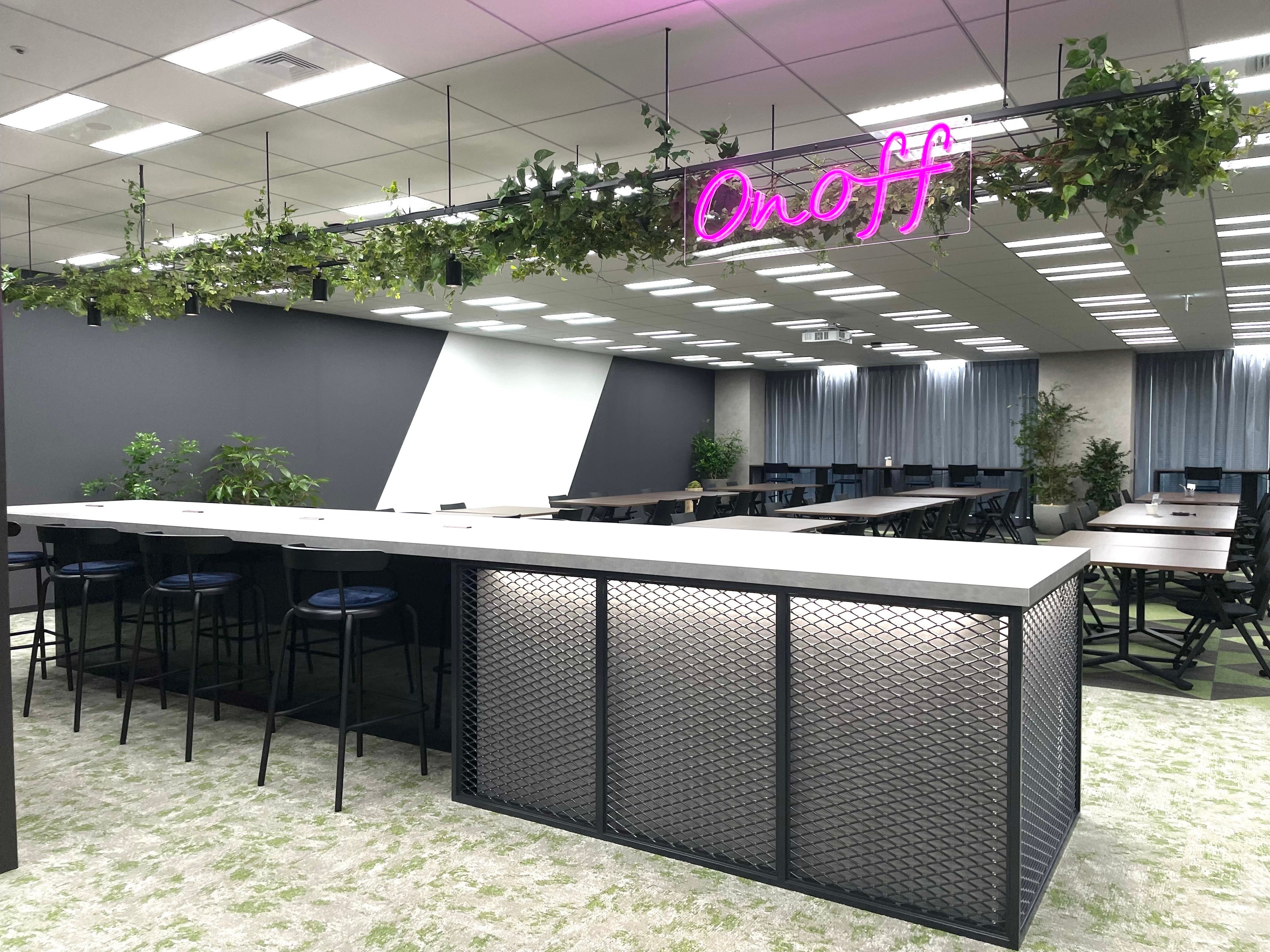 増床オフィスOnoffは「都会のワーケーション」をコンセプトにし、仕事と遊びを切り替える場所として位置付けています。