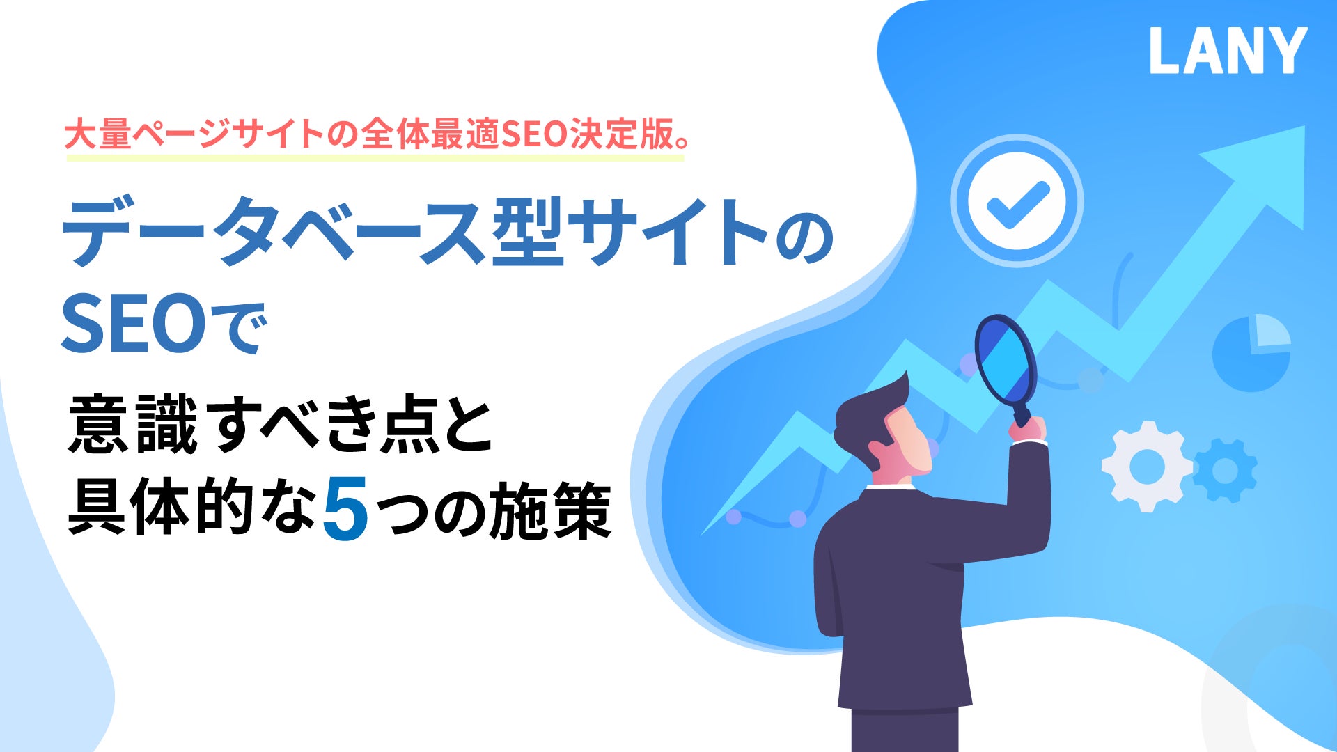 SEOコンサルティングサービスを提供する株式会社LANY(東京都新宿区、代表取締役社長:竹内渓太)は、データベース型サイトのSEOに取り組む上で重要になる点と、具体的な5つの施策をおまとめしたお役立ち資料(全19ページ)を公開いたしました。