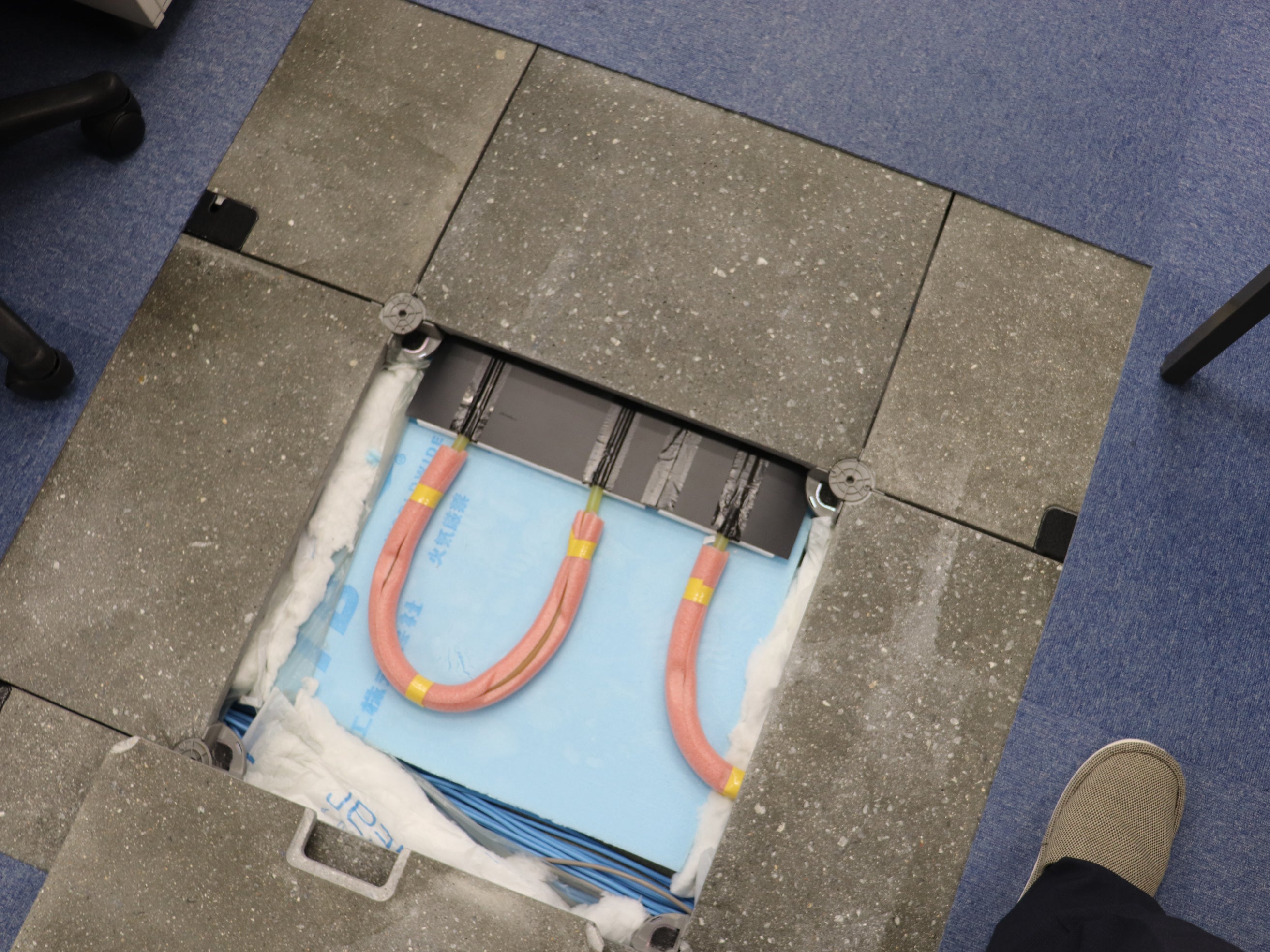 電気料金高騰とコロナ禍の中、十分に換気をしても空調用の電気代が無駄にならず、足元が寒くならないOAフロア用温水床暖房ユカカラ暖房MUTE OA(ミュートOA)が開発されました。
