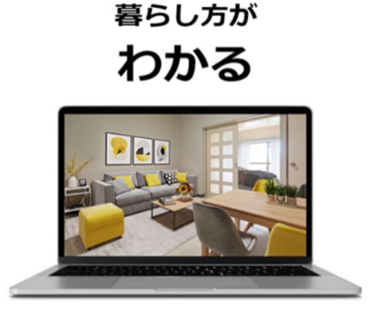 90%以上の人がインターネットで不動産物件を探しています。人口減少による家余り、空き家問題など、不動産物件「箱」の情報を並べるだけでは、ユーザーに選ばれない時代となりました。暮らしのイメージを加え、物件内を可視化することにより、オンライン上でも物件の強みや価値を伝えられる「3DCG・VRビジュアルマーケティング」がオンライン上の不動産広告の標準となり、ユーザーにとっても、選んだインテリアをそのまま新居に購入設置できるインテリアセレクト機能など開発・拡充していきます。