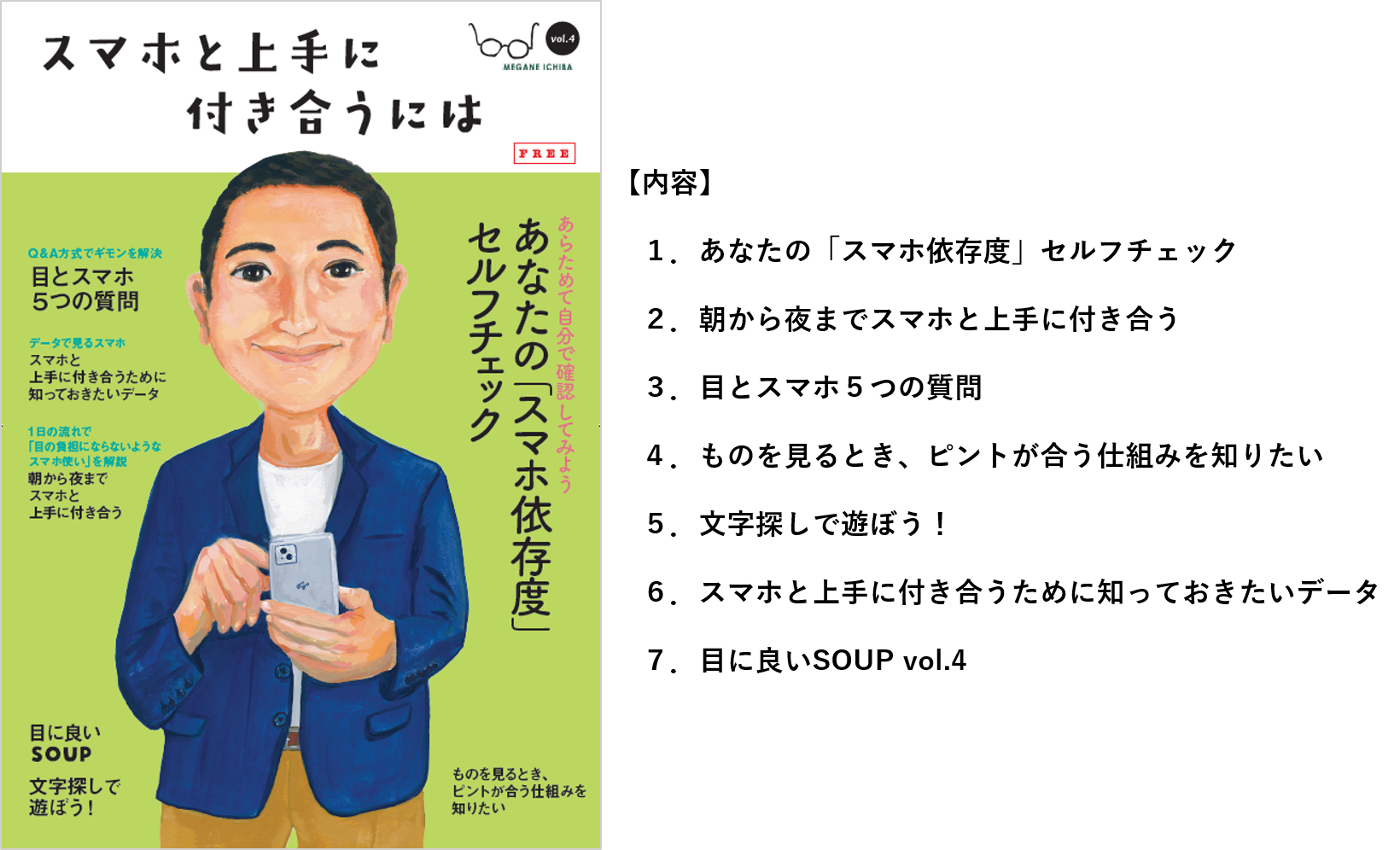 第4弾となる今回は、世帯保有割合が8割超という調査結果(※1)もある、今や日常生活に浸透し身近になったスマートフォンとの付き合い方について、図解やQ&A方式で詳しく解説した『スマホと上手に付き合うには』を、2022年9月6日より全国の「眼鏡市場」店舗にて希望者へ配布します。