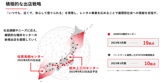 また、今期中にパートナーと連携した足場レンタルサービス「ASNOVA STATION」も含め、合計29拠点で足場をレンタルできる環境を整えたいと考えております。