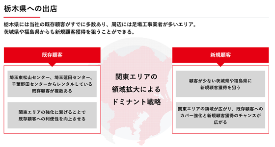 また、関東北部に位置するため、茨木県や福島県の新規顧客ニーズにも対応が可能だと考えております。