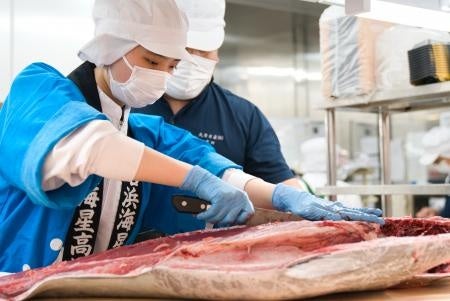 今年は新たに鮪の解体に挑戦したいとの相談を受けて、6月20日に第1回目となる練習を皮切りに、マルトの鮮魚部および水産物仲卸の丸秀水産株式会社様のご協力のもと、複数回の練習を積み重ね、解体ショー開催を実現できるまでに至っております。