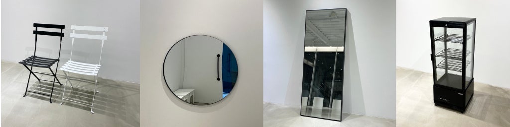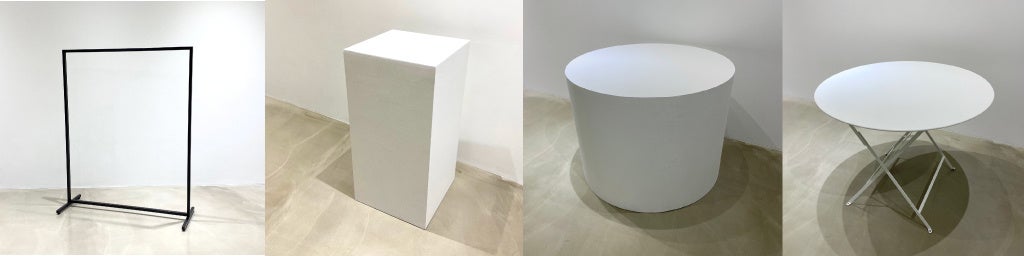 シンプルな角柱・円柱、真っ白なレセプションカウンターなどハンドメイドのMILオリジナル什器に加えて、ハンガーラック、メタルチェア、丸鏡など上質な什器を各種揃えております。