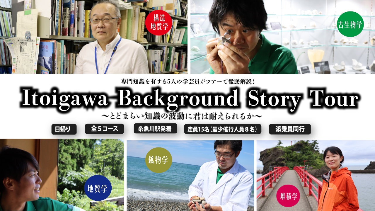 専門知識を有する糸魚川市の5人の学芸員が徹底解説する全5コースのツアーを、10月1日より5回に渡って開催。