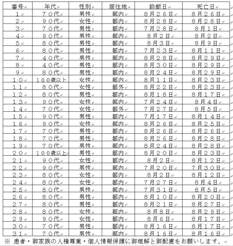 新型コロナウイルスに関連した患者の死亡について business Twitter Facebook はてブ Pocket LINE コピー 2022.09.05 この記事は約1分で読めます。 都内で新型コロナウイルスに感染した方が死亡されましたのでお知らせします。 お亡くなりになった方のご冥福をお祈り申し上げます。