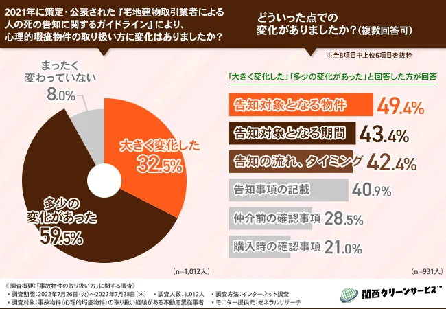 - 9割以上が変化を感じている。事故物件ガイドラインの策定