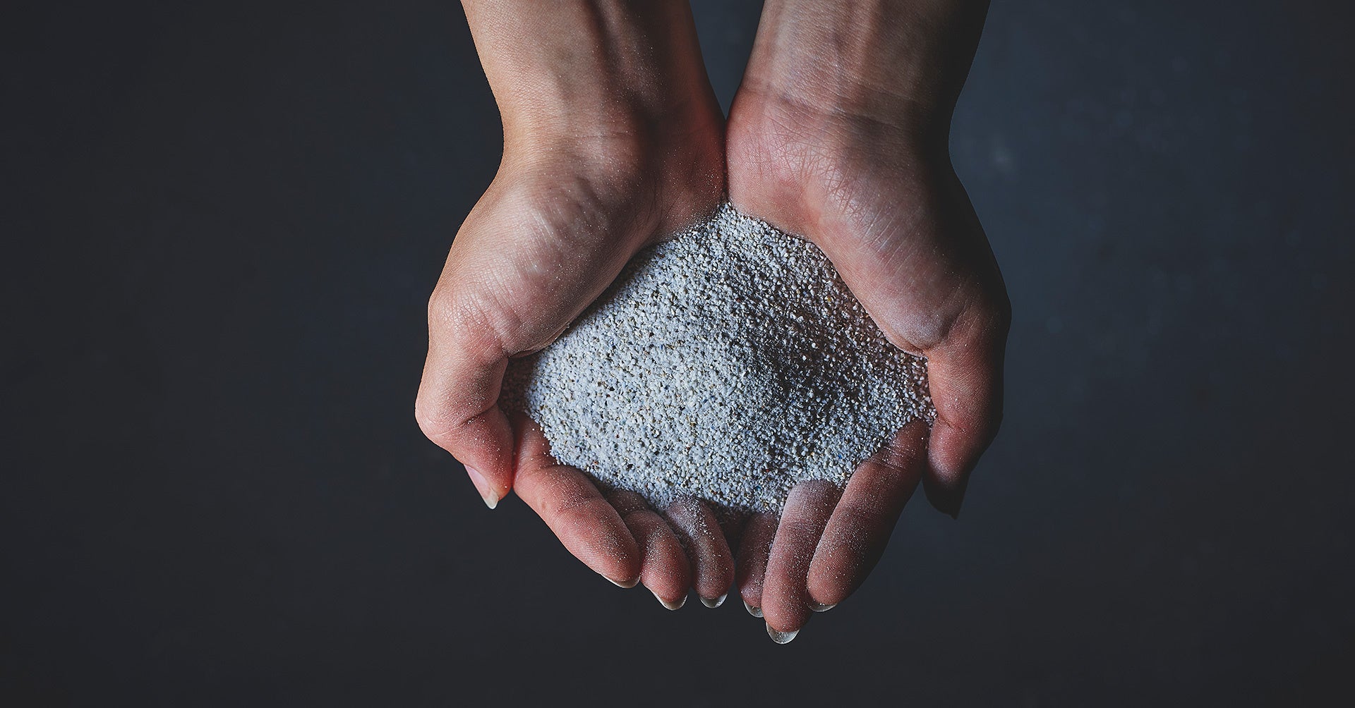 リサイクル土は、全てをその土で賄うことはできません。リサイクル土を通常の陶土に混ぜて使用します。今回はその混ぜ込むリサイクル土の粒子を調整することで、量産陶器の均等な仕上がりと違う「不均等な仕上がり」を作り出すことに成功しました。リサイクルする前の陶器の釉薬の色やテクスチャーがわかるギリギリの荒い粒子を使用しています。できたもの一つ一つがフォルムは同様ながらに放つアーティスティックな「作家性」は、通常量産で使われる陶土には醸すことのできない美しさとなりました。