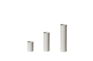 筒状のものや口がつぼんでいく形。量産を得意とする美濃焼では「ガバ鋳込み」という鋳込み技術で作られるケースが一般的な製法。通常は製法ガバ鋳込みにより完全に成形を完成させますが、今回のCrunch・vaseはアーティスティックな面を強調するため、あらかじめ大きな鋳込型を作り、型から取り出す職人がひとつひとつ自分の手でカットすることで揺らぎを表現しています。その一手間をかけることで直線ではないカット面が生まれ、シンプルで直線的な花瓶に一層の「作家性」を実際に埋め込みました。