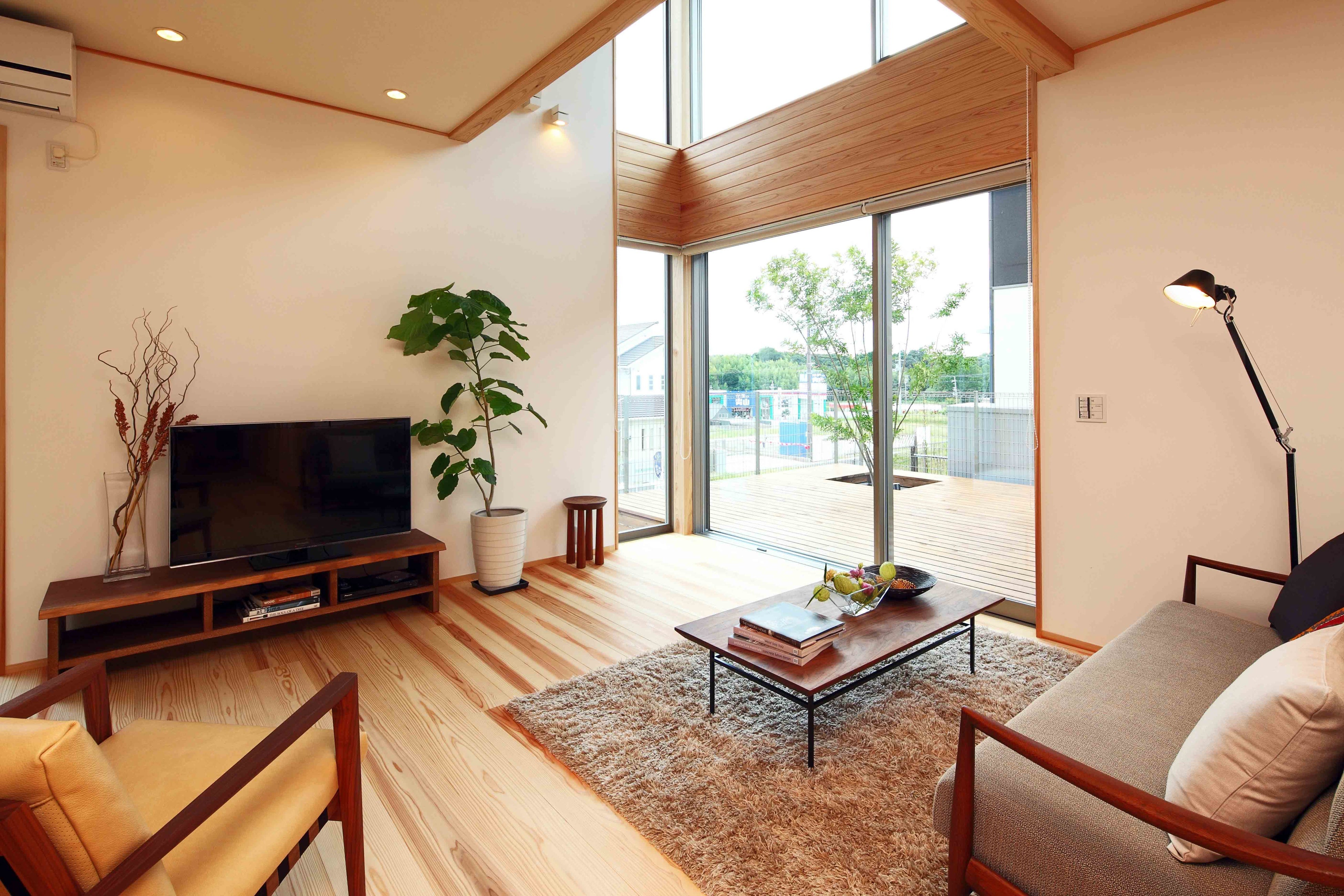 ウッドデッキと一体感のあるリビングは、天気のいい時には窓を全開にすることで、家にいながらアウトドア気分が味わえます。