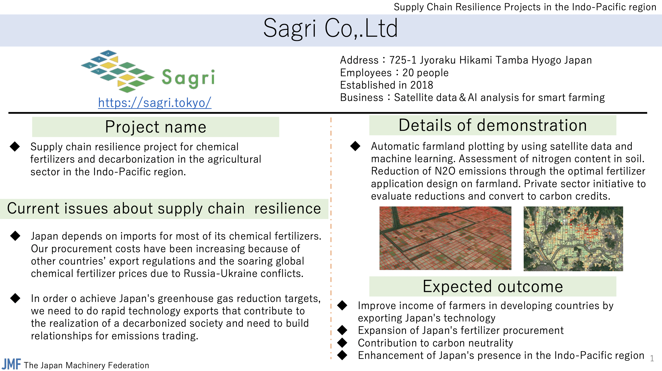 - Sagri Initiatives: Supply Chain Resilience Project for Chemical Fertilizers and Decarbonization in the Indo-Pacific Agriculture Sector