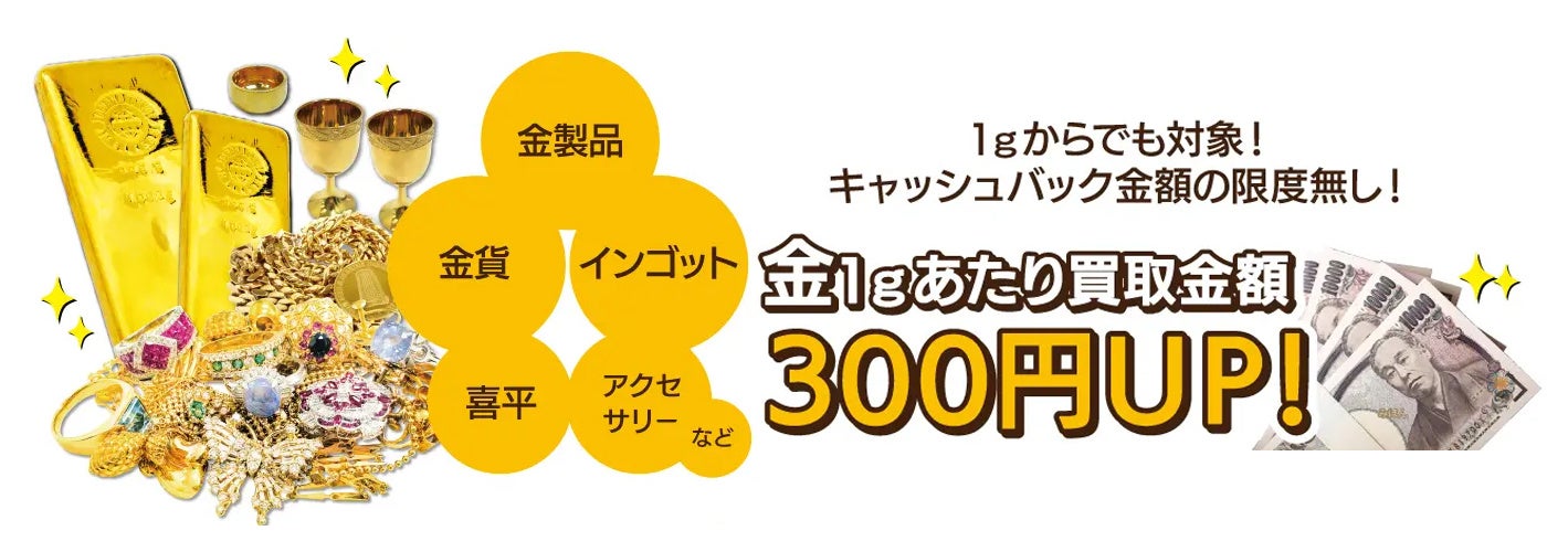 - 金1gあたり買取金額300円UPキャンペーン
