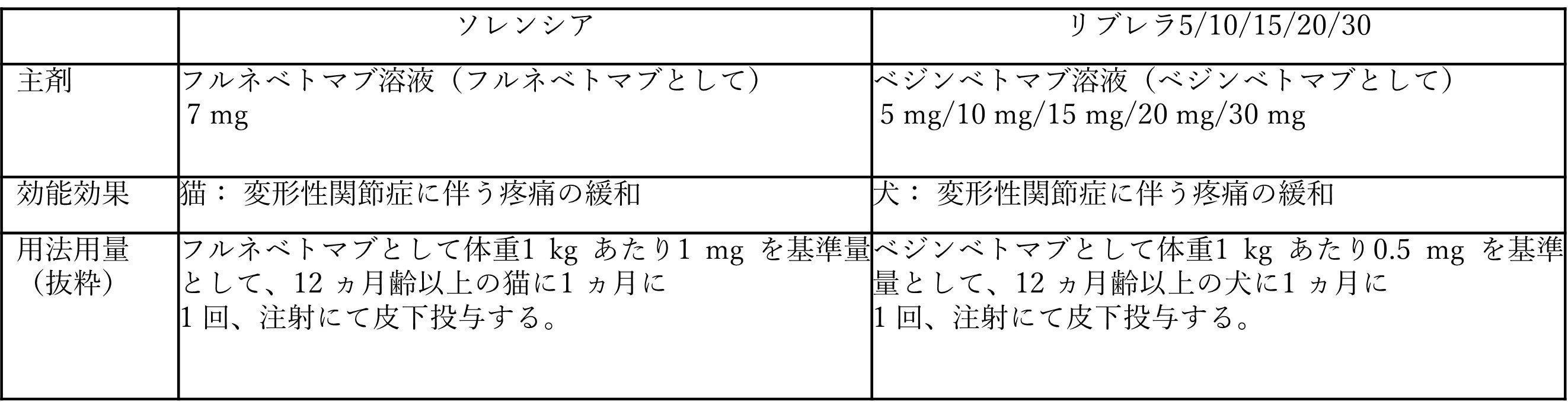 革新的な変形性関節症に伴う痛みの治療薬である「ソレンシア」と「リブレラ」の登場により、はじめて治療可能となるケースが多いと想定しており、本剤を一日も早く獣医師、飼い主様、そして痛みに苦しむ犬と猫にお届けできるよう、全力で取り組みたいと考えています。
