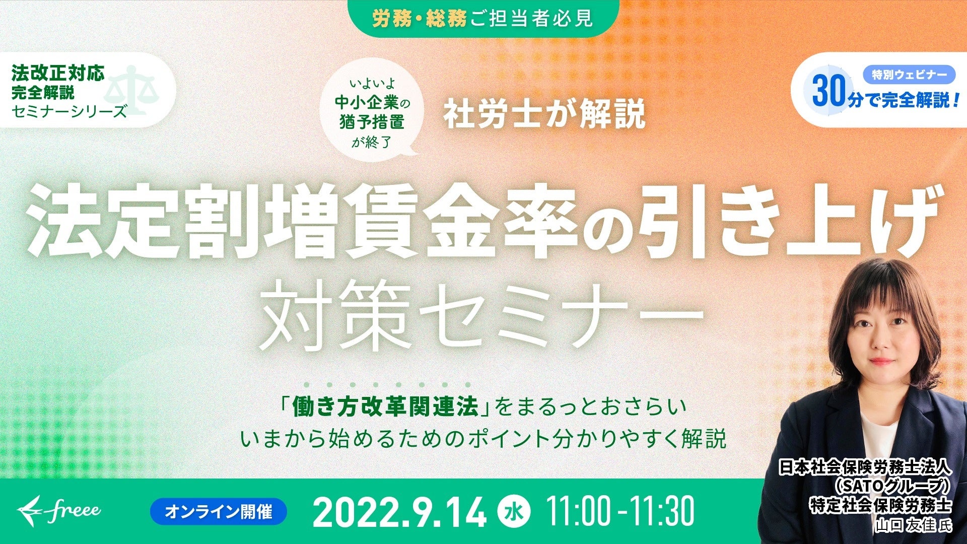 ・9月14日(水)11:00~11:30 法定割増賃金率の引き上げ対策セミナー