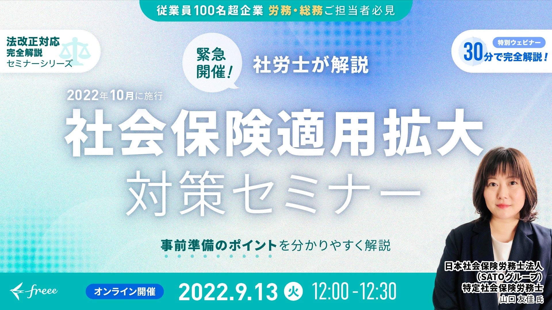 ・9月13日(火)12:00~12:30 社会保険適用拡大対策セミナー
