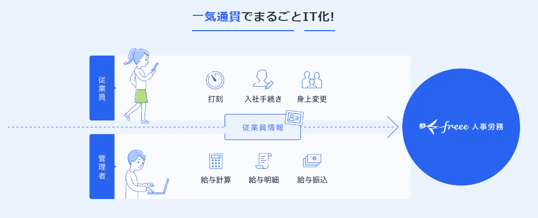freee人事労務は、勤怠管理、給与計算から年末調整・労務手続きまでを一気通貫で自動化できるサービスです。