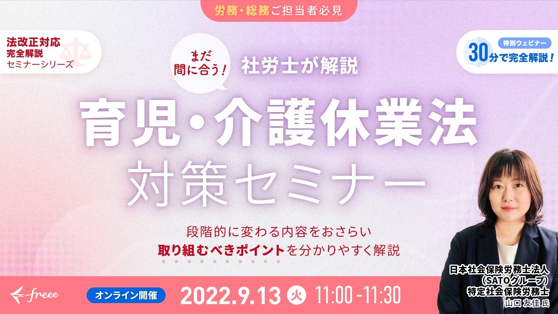 ・9月13日(火)11:00~11:30 育児・介護休業法 対策セミナー