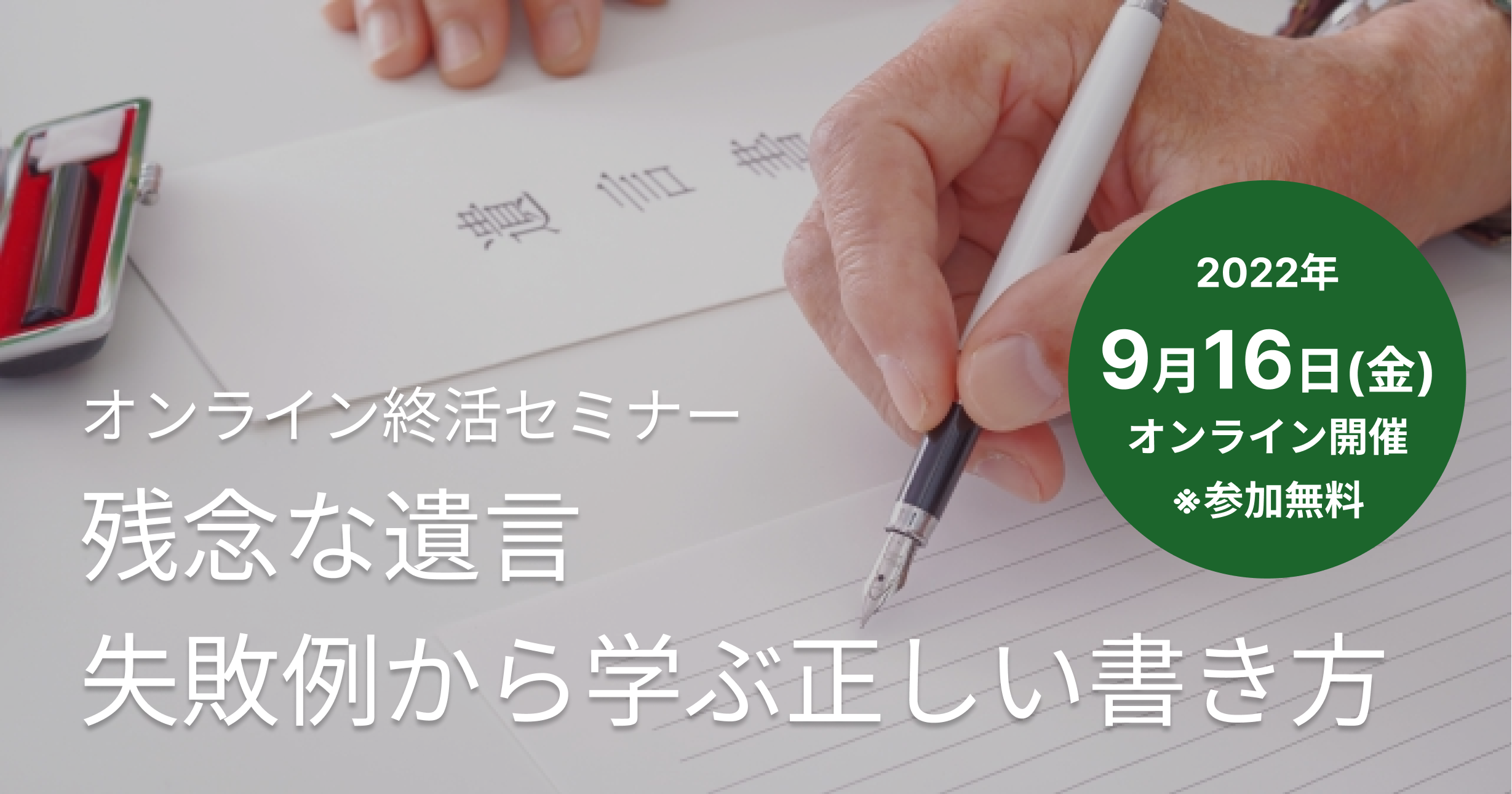 日本対がん協会(本部:東京都中央区、会長:垣添忠生)では、がん征圧活動を推進するために、遺贈寄付によるご支援をお願いしています。その一環として、相続、遺言、終活などをテーマにセミナーを開催し、遺贈寄付についてのご案内をしています。今回は「残念な遺言 失敗例から学ぶ正しい書き方」と題して、自筆証書遺言で陥りがちな失敗例から、正しく書くポイントをご紹介します。