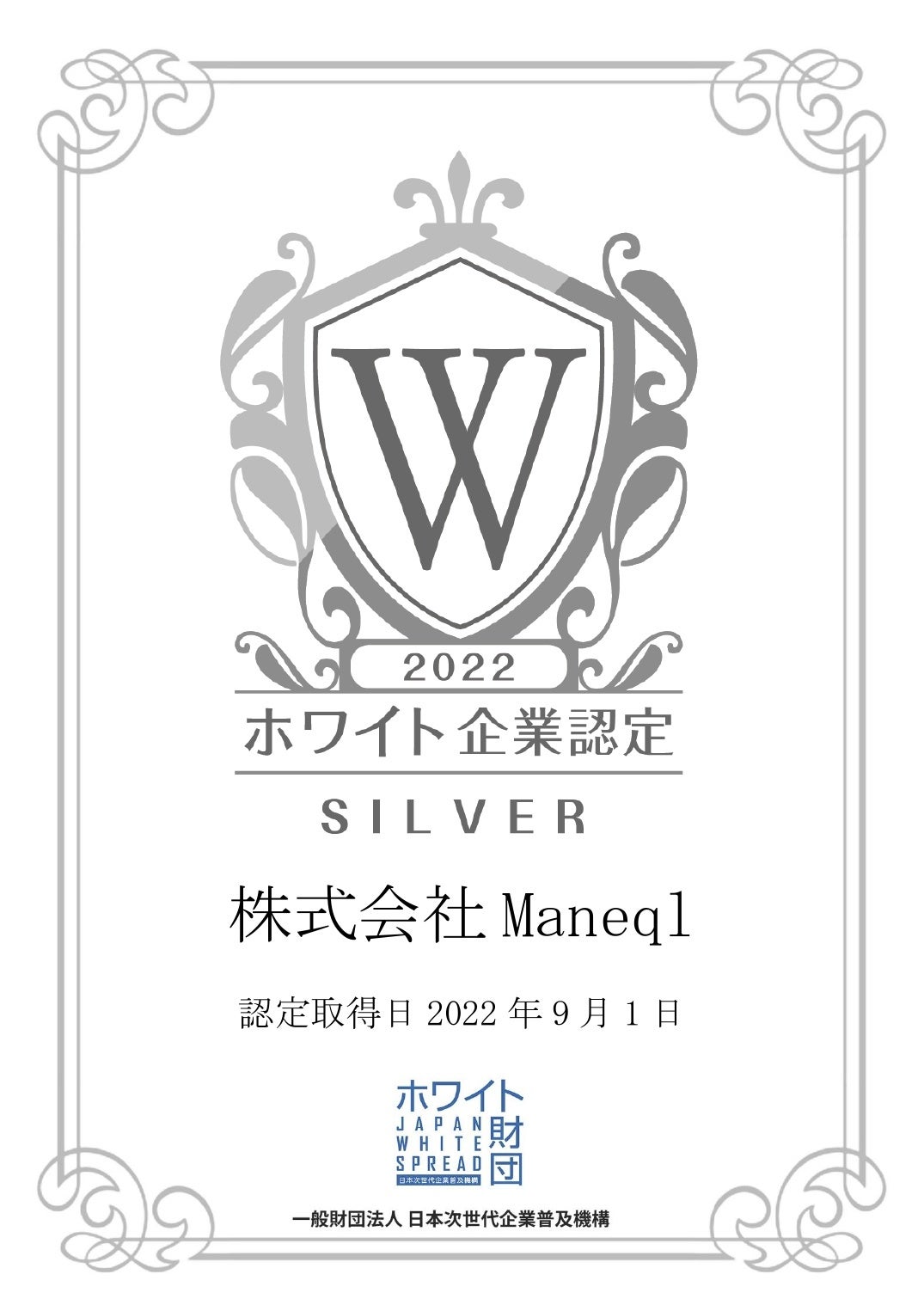 その中でも、株式会社Maneqlが2022年9月1日、ホワイト企業認定を取得されました!