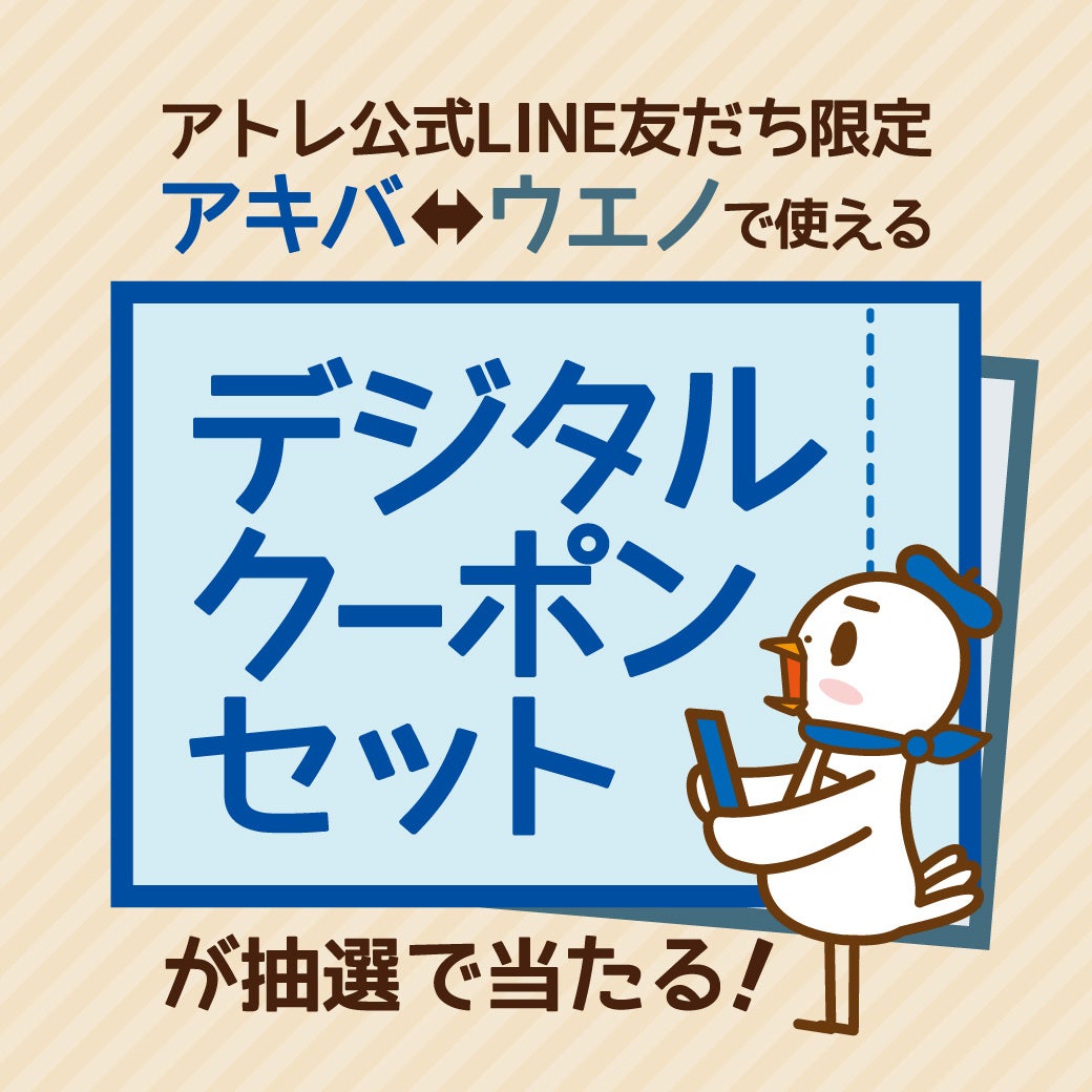 - 【アトレ秋葉原・アトレ上野】アトレ公式LINE友だち限定『アキバ⇔ウエノで使えるデジタルクーポンセット』が抽選で当たる!