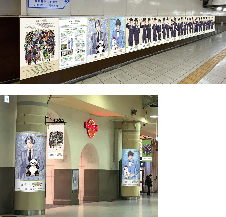 館内の他に、秋葉原駅総武線連絡通路にLATCH!全員のポスター、上野駅グランドコンコースに柱巻きタペストリーも展開!※画像はイメージです