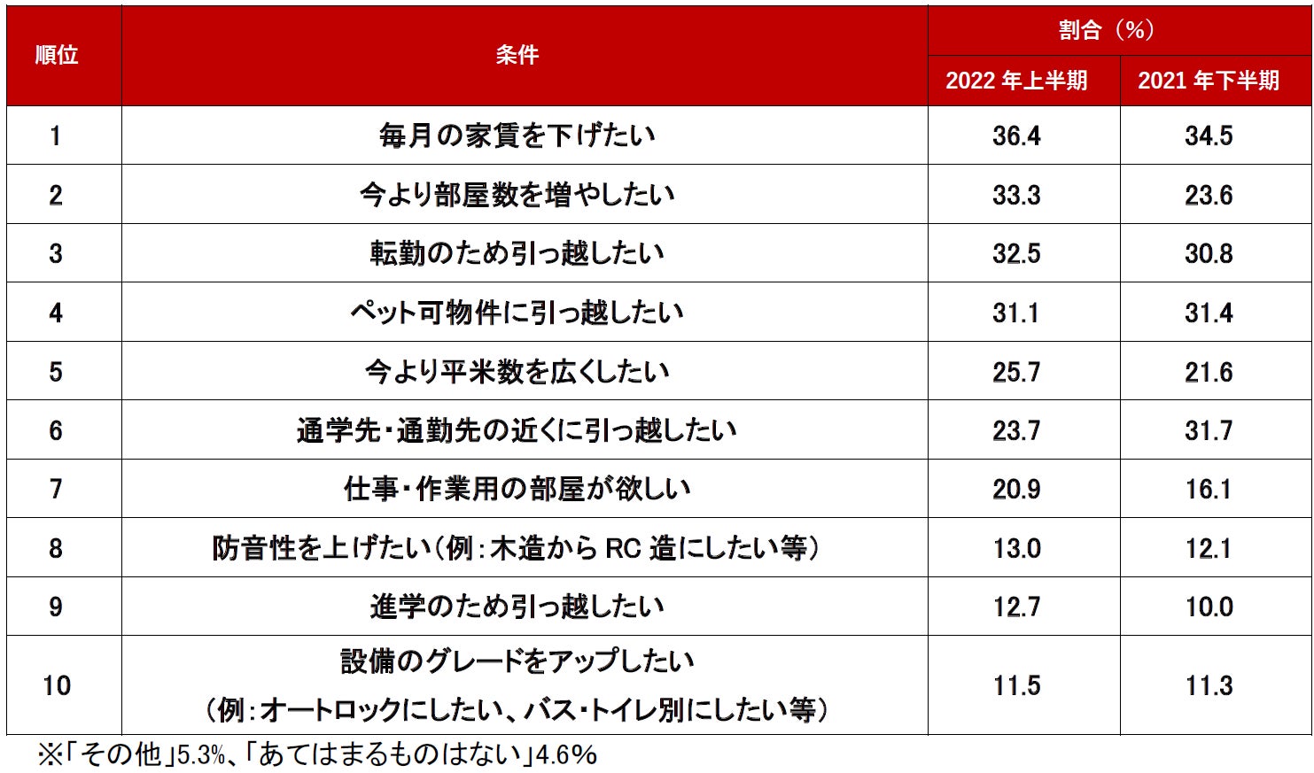 • ≪条件編≫ 1位 「毎月の家賃を下げたい」 36.4%