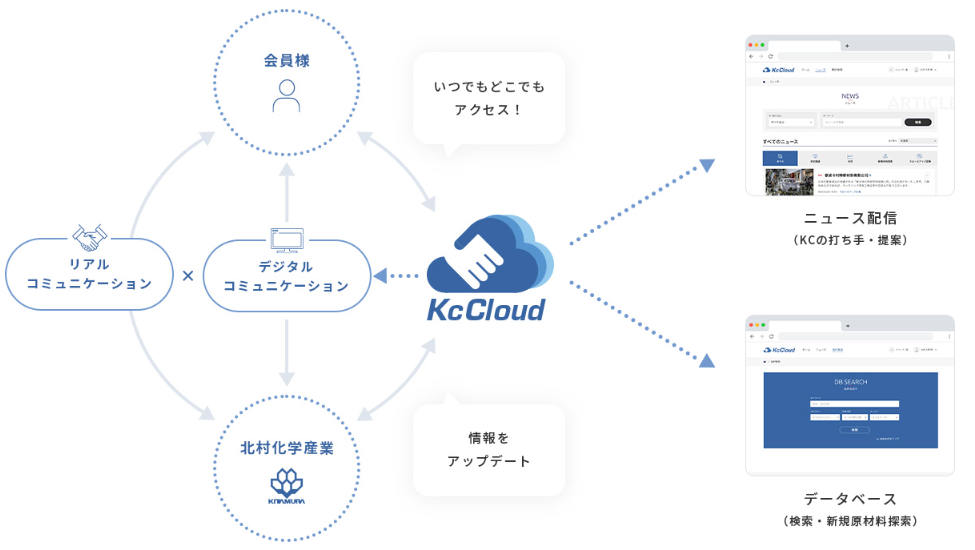 北村化学産業の知見(目利き力)を活かした「価値ある情報」が一元管理されており、会員は直接対面する事なく