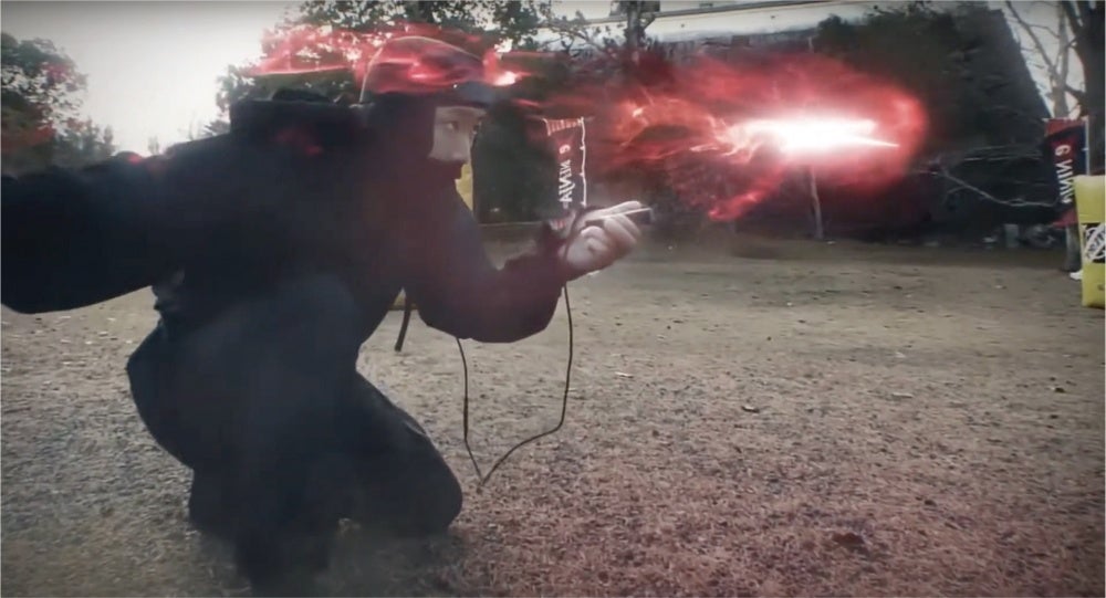 手のひらの赤い手裏剣をシュッとするとレーザー発射!