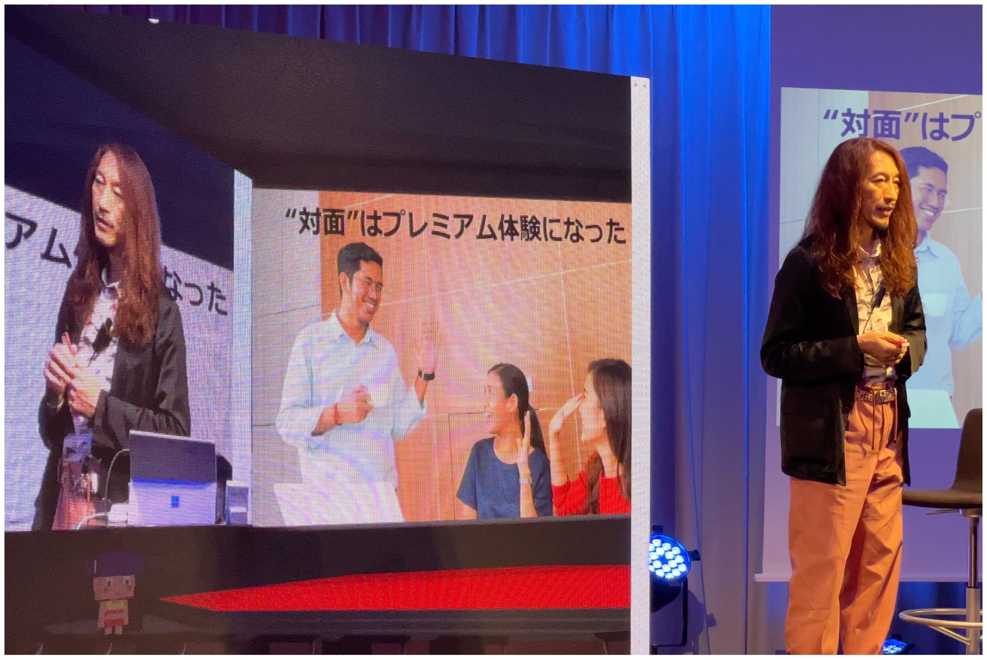 “新しい明日” に向けたイベントツールやサービスを体験できる展示会場と関連し、セミナー会場ではそれぞれの参加者が “新しい明日” を切り開けるようになることをゴールとして、【リアル×メタバースのハイブリッド形式】で『澤円氏による特別セミナー』が開催されました。