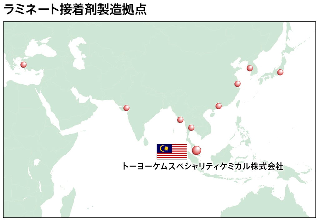 この度トーヨーケムスペシャリティケミカルは、アジア域での旺盛な需要に応えるため、生産能力を2倍に拡大いたします。増設した設備は23年3Qに稼働予定で、アジアのラミネート接着剤製品のマザー工場として、東洋インキグループが強みとする高機能製品を中心にアジア全域に製品を供給してまいります。