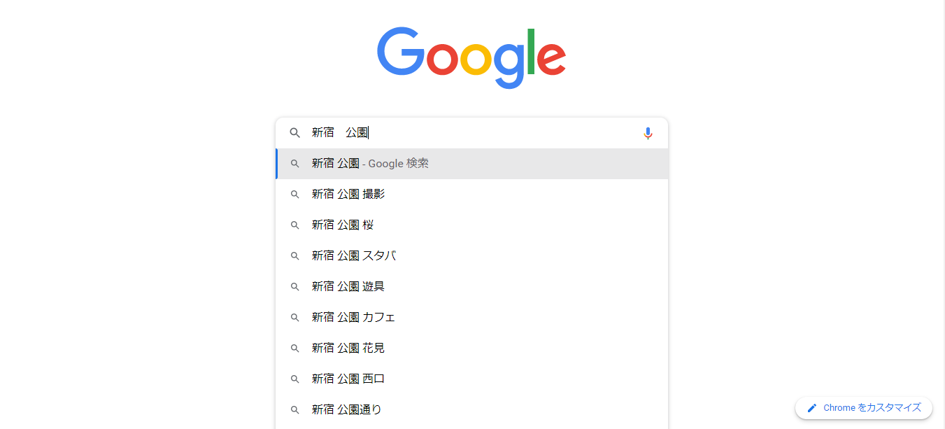「新宿 公園 ○○」の○○の部分がサジェストにあたるということです。