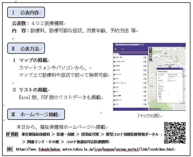 「新型コロナ後遺症対応医療機関」を公表します business Twitter Facebook はてブ Pocket LINE コピー 2022.09.09 この記事は約1分で読めます。 東京都では、後遺症に悩む都民が、後遺症に対応している医療機関をインターネット上で探し受診できるよう、都のホームページにて公表します。
