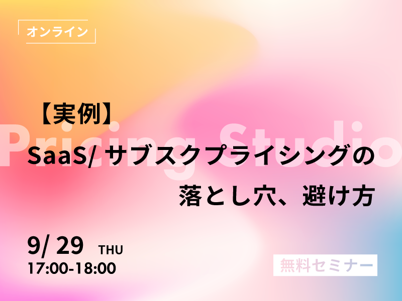 セミナー名:【SaaS/サブスク】上場企業からアーリー企業まで支援したプライスコンサルタントが語るプライシングの落とし穴、避け方