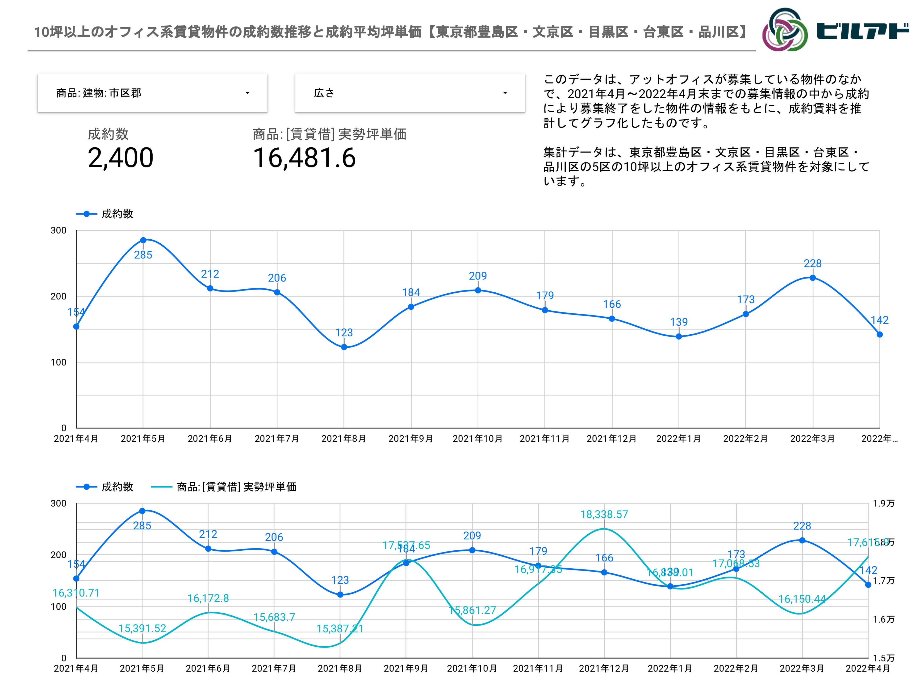 googledataportalを利用し、エリア・坪数などから希望する条件で検索ができますので、必要な情報を取り出すことが可能です。