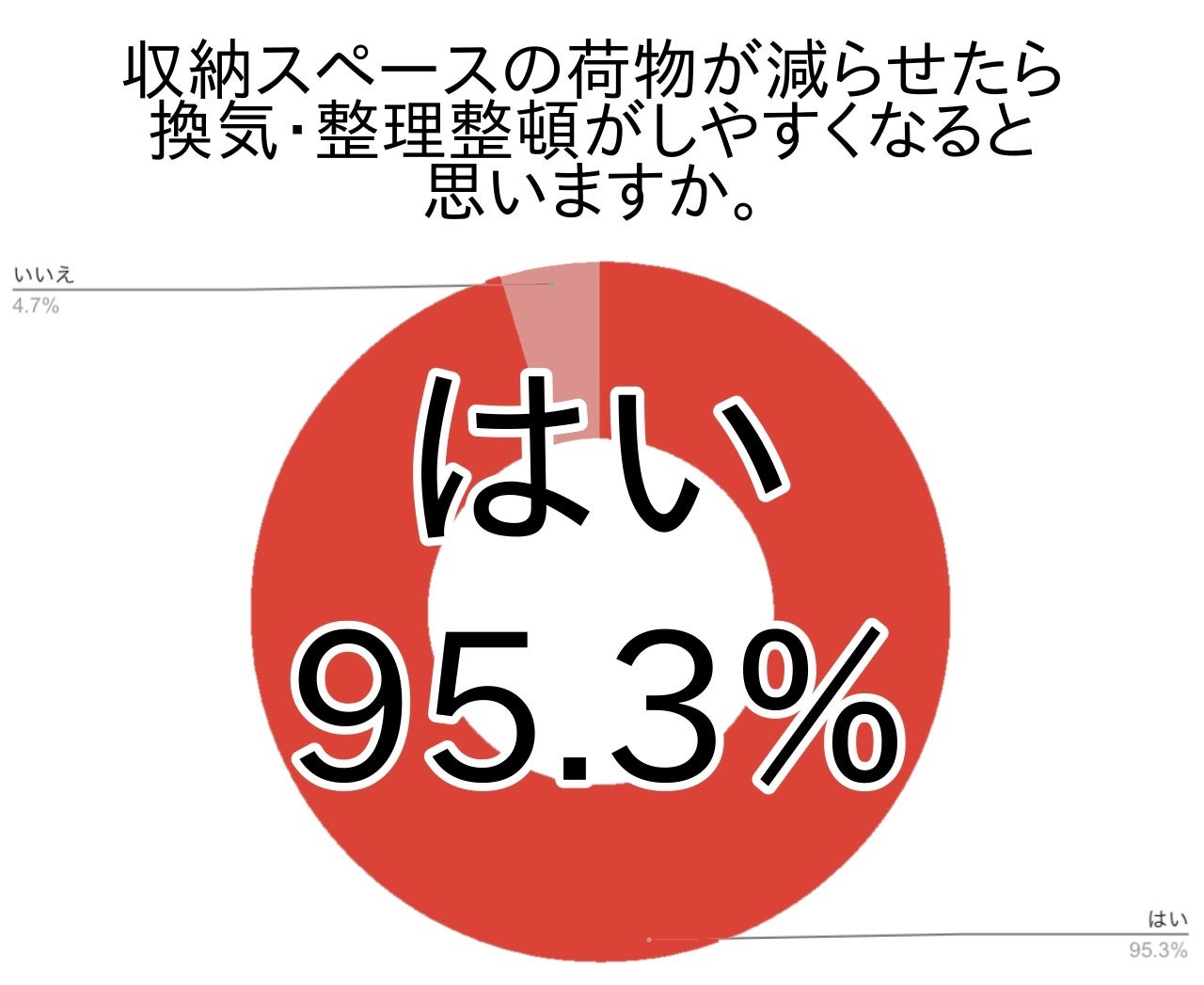 95.3%もの回答者が、収納スペースの荷物がもし減らせたらこまめに換気や整理整頓がしやすくなると考えていることがわかりました。