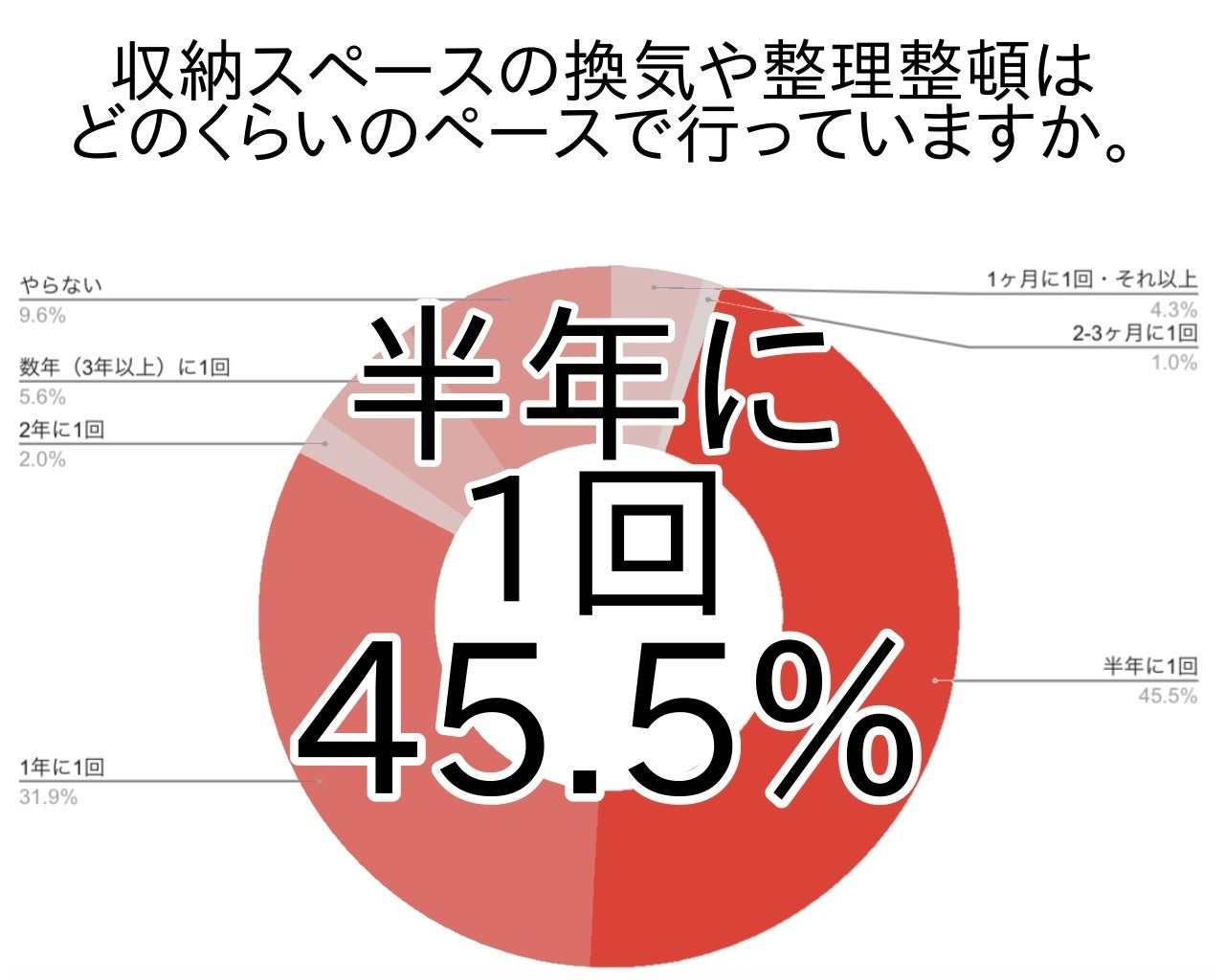 続いて、収納スペースの換気や整理整頓について、どの程度のペースで行っているのか尋ねました。