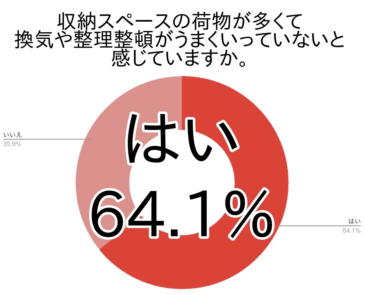半数を大きく超える64.1%が、収納スペースの荷物の多さで換気や整理整頓がうまくいっていないと感じると答えました。